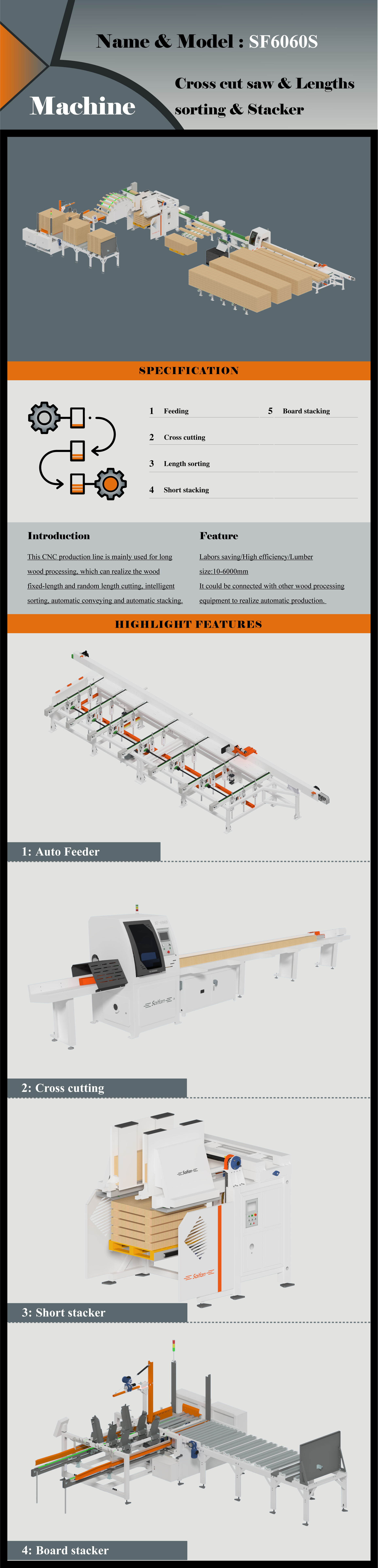 SF6060S+ Cross cut saw & Lengths sorting & Stacker