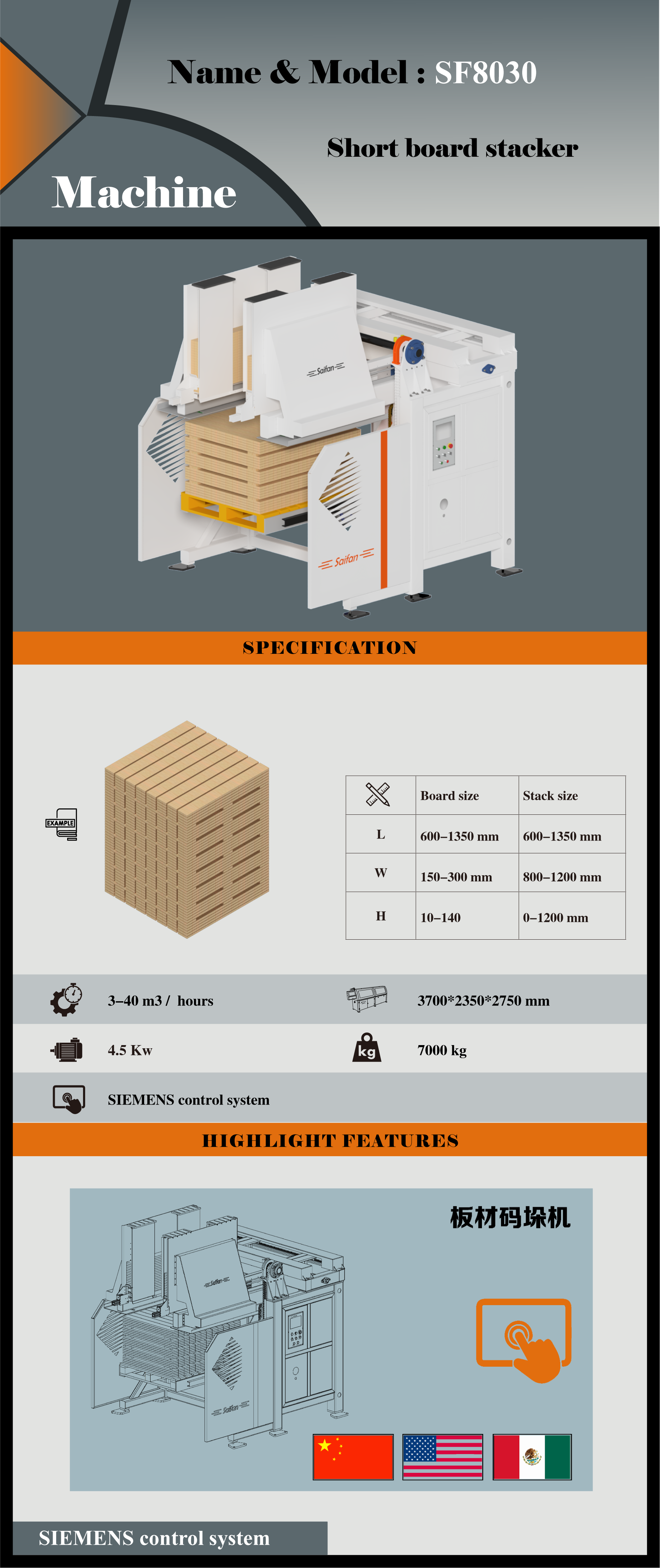 SF8030 Short board stacker