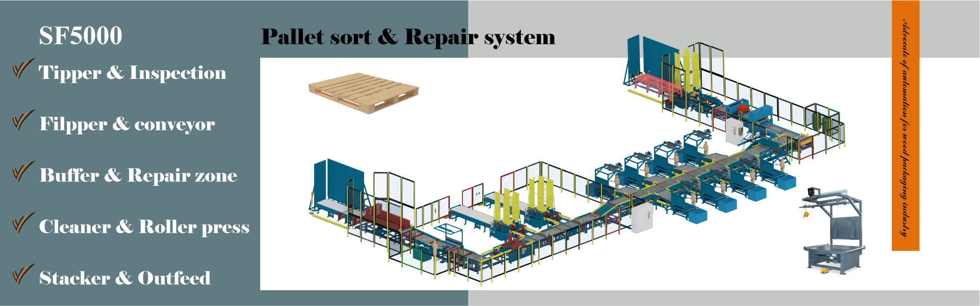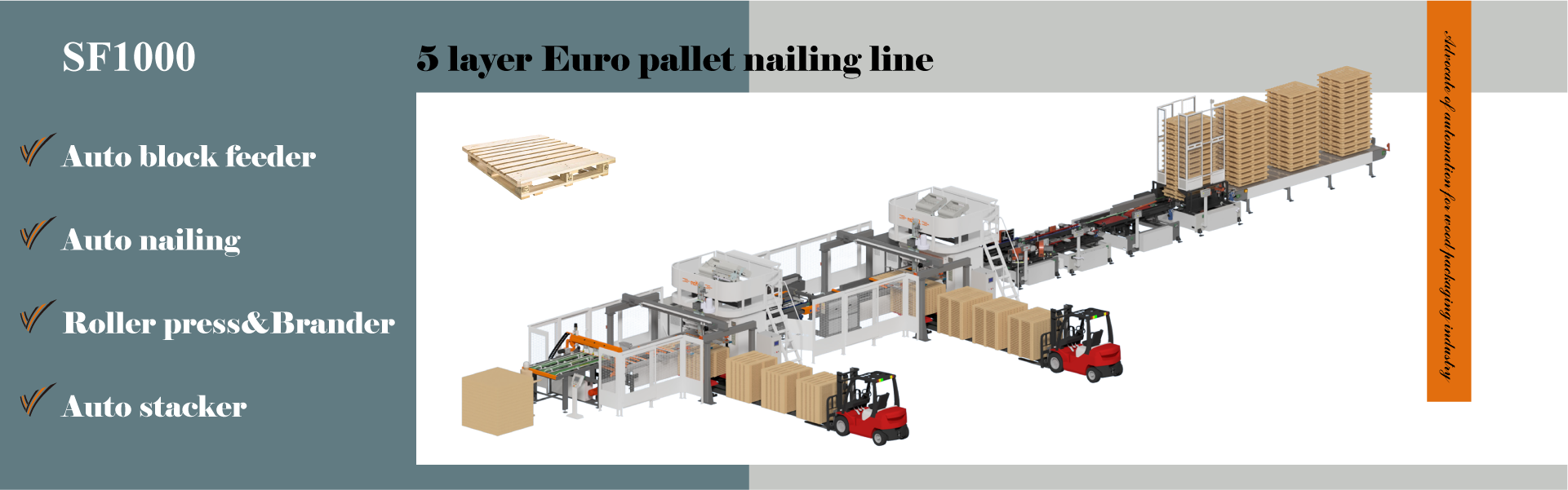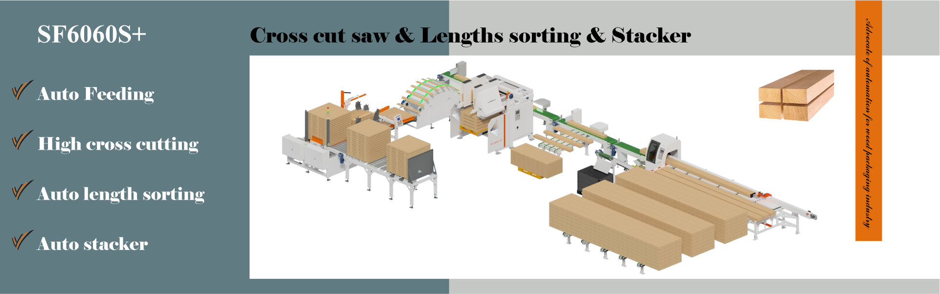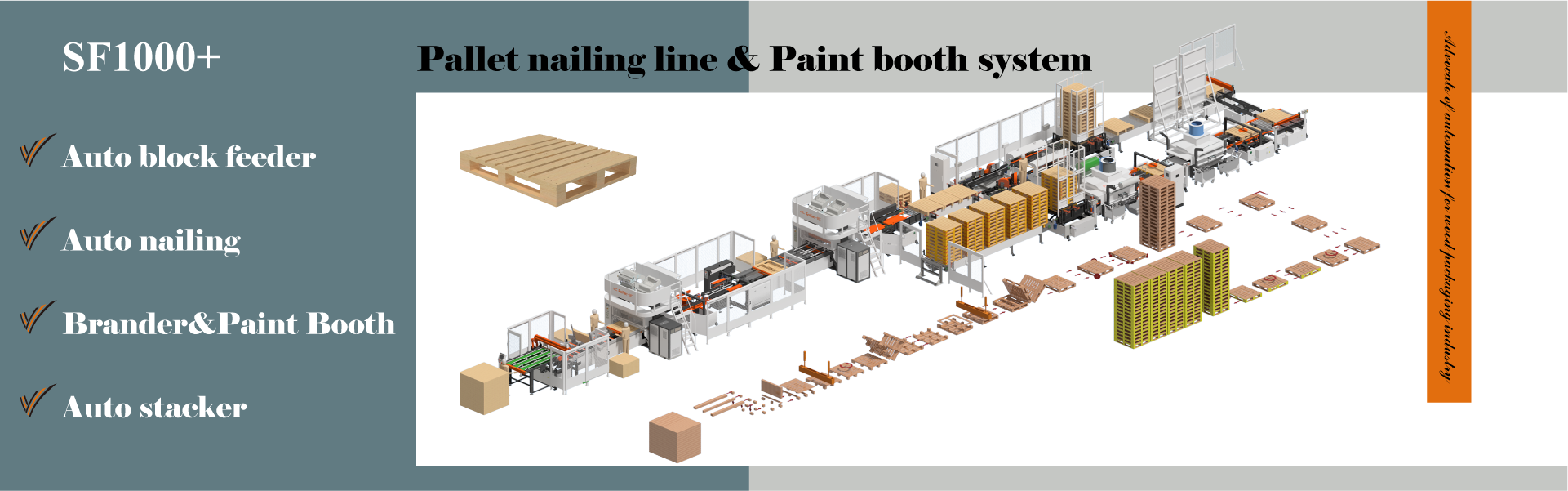 Qingdao Saifan Packaging Machinery Manufacturing Co., Ltd. was founded in 2008 in Qingdao China. We are committed to the research and development, production and sales of intelligent manufacturing machinery for the wooden packaging industry. We have vertical integration capability from basic components, to complete machinery and whole processing solutions. We are one of the leading supplier in the world for wooden package automation production.